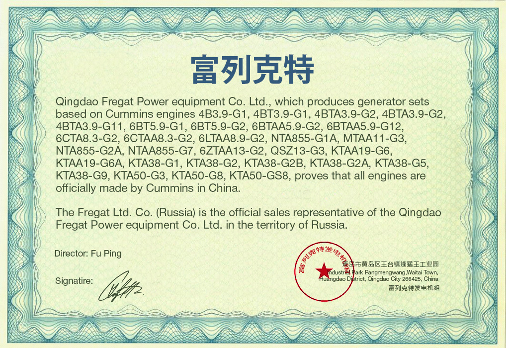 Успешный опыт работы, тысячи выполненных контрактов, довольные клиенты, квалифицированный штат сотрудников и стремление предоставить лучшее оборудование, исходя из требований клиента и предполагаемых условий эксплуатации дизельных и газопоршневых генераторных установок и цены - основные аргументы для выбора «Фрегат» в качестве постоянного партнера и поставщика.